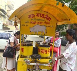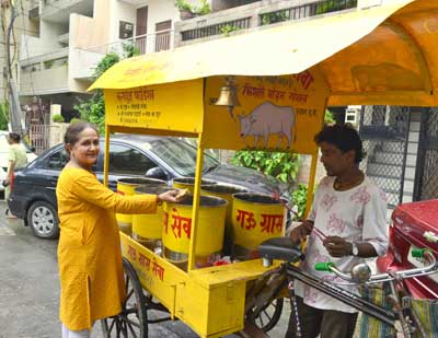 (Click to view the Exclusive Collections)Gau Grass Riksha Sevak team collects Fresh Gau-grass food stuffs like Vegetable Leaves, Flour, Chapati, Grains etc. every morning from homes and feed to Goshala & Street Cows with love & affection which were eating garbage earlier.